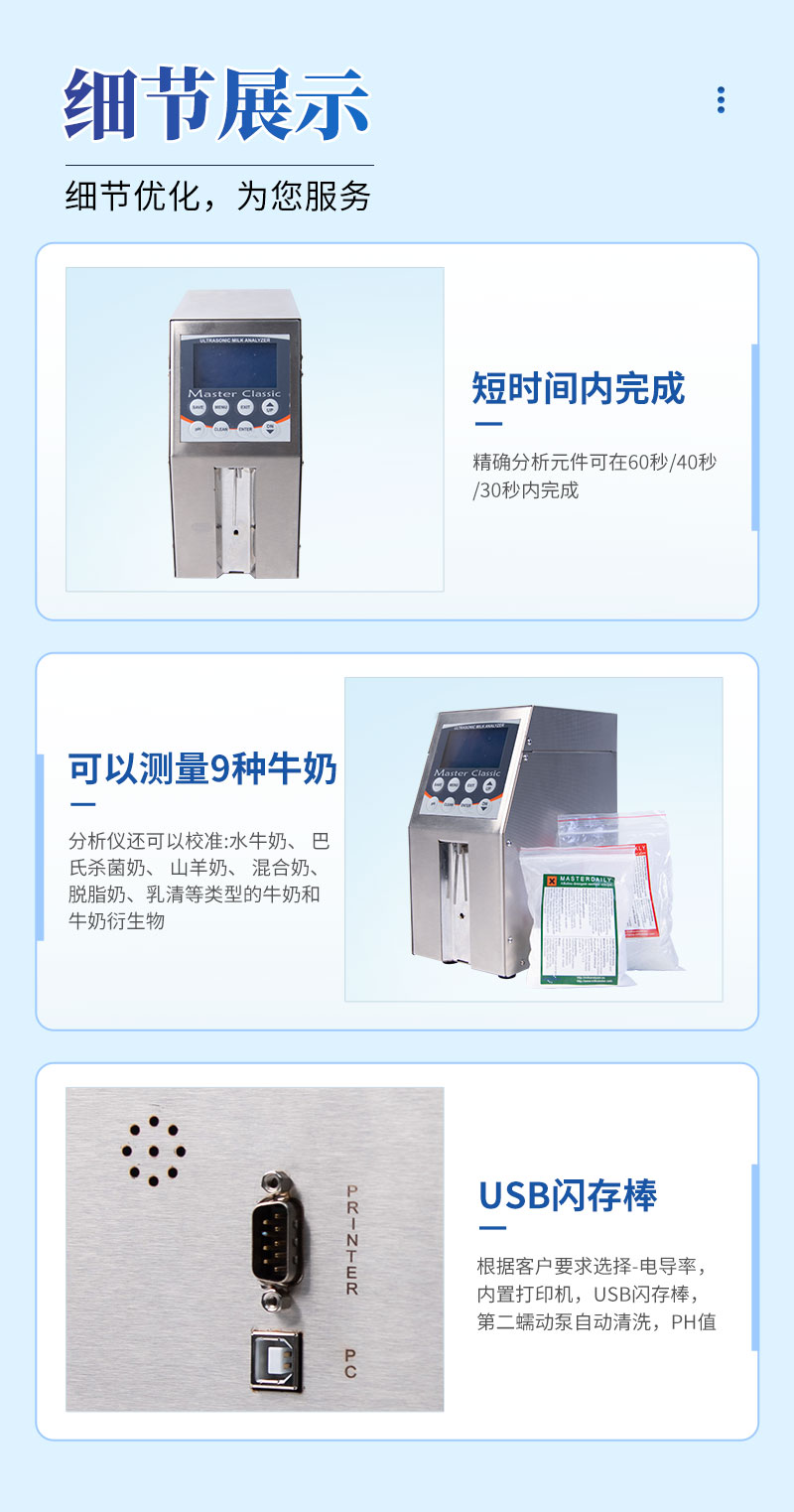 1、MILK CLASSIC是一種高質量可以測量9種牛奶參數的儀器。