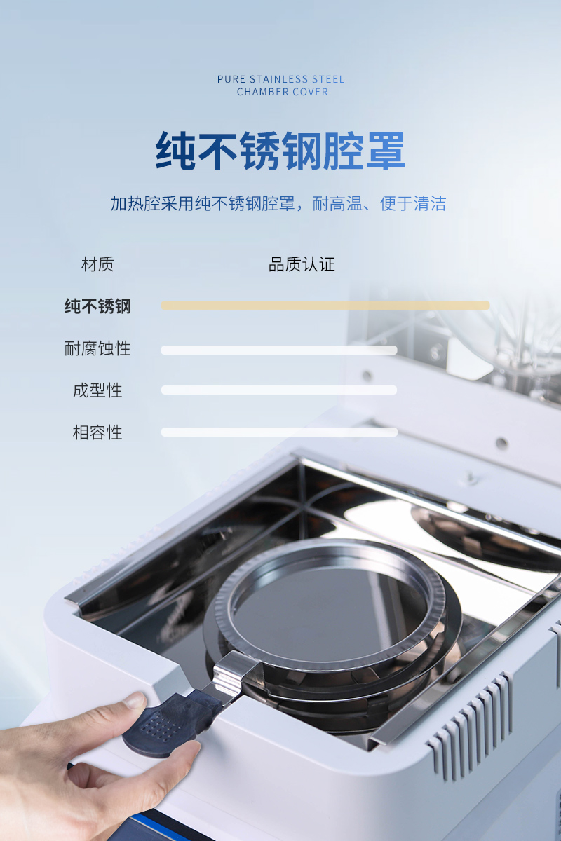 11、加熱腔采用純不銹鋼腔罩,耐高溫、便于清潔。