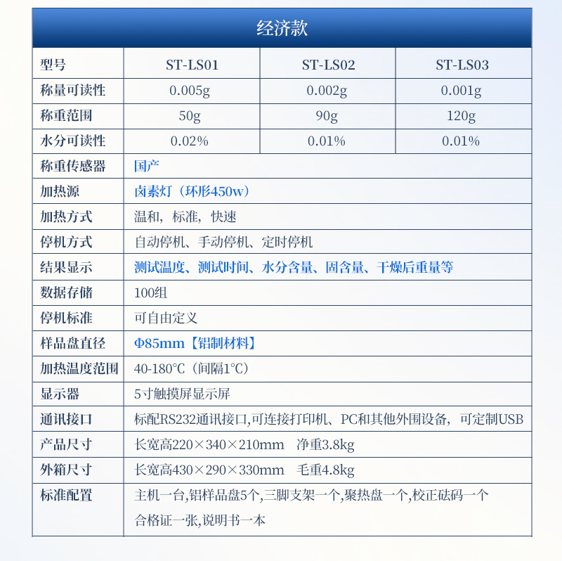 水分可讀精度 Moisturereadability | 0.02% | 0.02% | 0.01% | 0.01% |