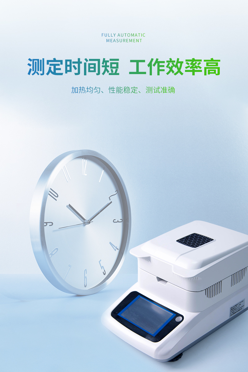 該系列快速水分測定儀應用了國際烘箱干燥法原理,測定結果與烘箱法水分測定具有良好的一致性,工作效率卻遠遠高于烘箱法水分測定,一般樣品只需要幾分鐘即可測量完畢,因此受到廣大用戶的青睞與好評。