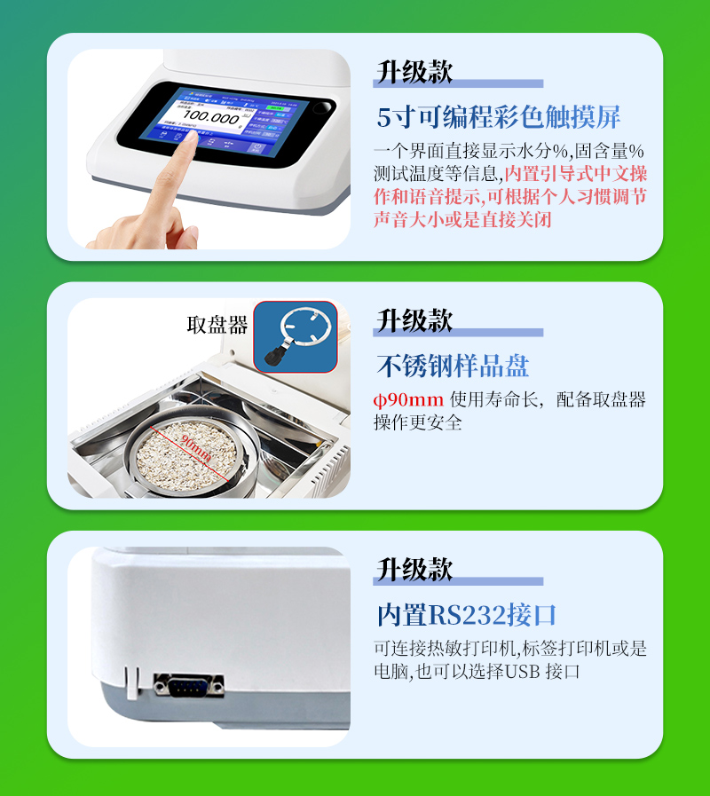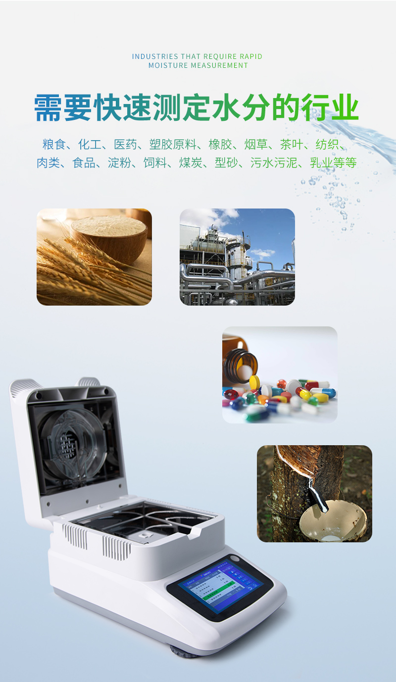 7、用途非常廣泛、幾乎適用各行業(yè)的水分測(cè)定;