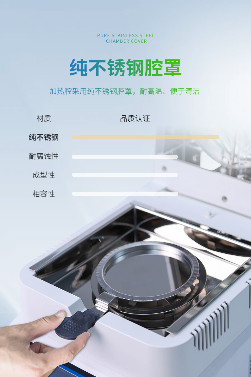 11、加熱腔采用純不銹鋼腔罩,耐高溫、便于清潔。