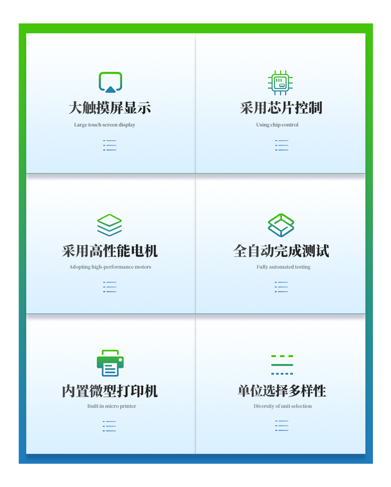 1、采用芯片控制,高精度測(cè)力傳感器,精度高。